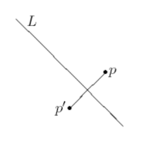 Given a point p and a line L on the plane, the refletion of p against L is a point p′ suh that the segment pp′ is perpendiular to L and its middle point is on L. If p is on L, then p′ = p.