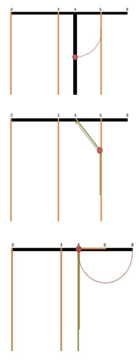 Once the performer grabs the rope that is 6 units away from the entrance, she starts climbing up the first rope (here – the temporary one).