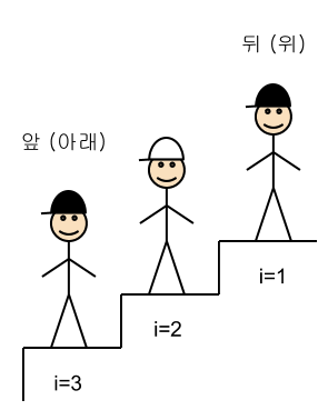 위 그림은 3명의 아이가 검은색/흰색 모자가 각각 2개인 상황에 뒤에서부터 2번째 아이가 정답을 말한 경우이다.