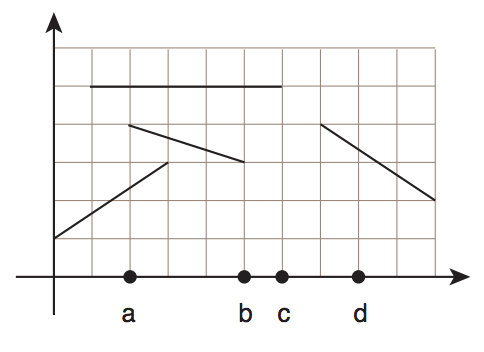 The ceiling of the hall consists of several plans that, viewed from the side, can be described by line segments, as shown in the figure below: