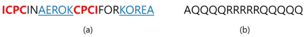 For example, the string in Figure J.1(a) is a pseudoknot since we can decompose the string w into six substrings u, v, zR, uR, y, z such that u = ICPC, v = IN, y = FOR and z = KOREA. Note that the two bold substrings (u, uR) are reversal to each other, and the two underlined substrings (z, zR) are reversal to each other. Now consider the string in Figure J.1(b). No matter how we decompose the string, we cannot make the pseudoknot structure. Therefore, we say that the string is not a pseudoknot.