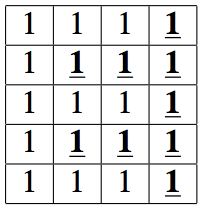 In each scan, a 1 indicates bone and a 0 indicates empty space. Two bones mesh together if the two scans can be put together to form a solid rectangle of 1’s with no overlap. Scan 1 above can mesh with Scan 2 (as shown above on the right), but Scan 1 cannot mesh with either scans 3 or 4 shown below: