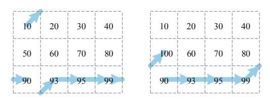 The first line contains two integers r and c (3 ≤ r, c ≤ 2 000) — the number of rows and the number of columns of the toroidal grid. The i-th of the following r lines contains a sequence of c integers ei,1, ei,2, . . . , ei,c (1 ≤ ei,j ≤ 109) — the initial elevations of cells in row i.
