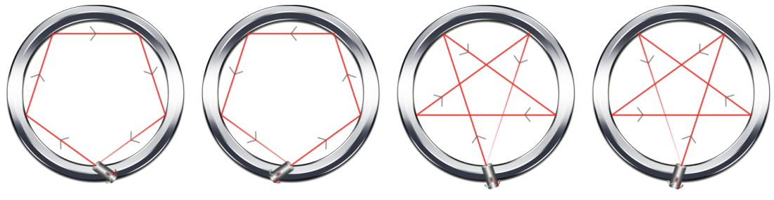 Fidel invented a circular ring. Its boundary is made of a reflective material and at one point on the circle’s boundary, a laser is placed. He wishes to set the angle of the laser in such a way that it bounces N times around the circle then returns to its original position. How many ways can he choose the initial direction of the laser?