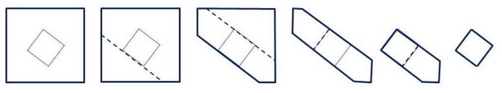 You would like to make a sequence of cuts to cut out B from A. To do this, you draw a straight line completely through A that is incident to one of the edges of B, which separates A into two pieces. You cut along this line and discard the piece that doesn’t contain B. You repeat this until the piece that you have left is exactly B.