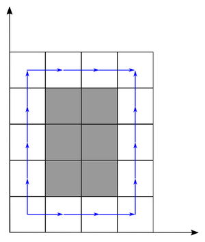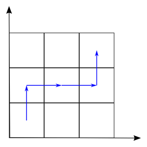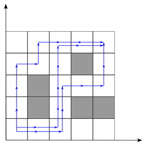 The track is represented as a grid composed of n × m squares. There are rectangular obstacles at the track, composed of grid squares. Masha must get from the square (1, 1) to the square (n, m). She can move from a square to adjacent square: either to the right, or upwards. If the square is occupied by an obstacle, it is not allowed to move to that square.