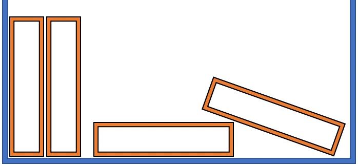 신나는 마음으로 북엔드를 구입한 준엽이는 당황했다. 북엔드의 바닥 면이 생각보다 컸던 것이다. 만약 두 개의 북엔드의 바닥 면을 겹쳐 놓으면 한쪽 북엔드가 기울어져서 보기 싫은 상태가 된다. 준엽이를 도와 책장을 깔끔하게 정리해 줄 북엔드의 최소 개수를 구해 주자. 북엔드는 충분히 크고 무거워서 책에 밀려 넘어지지 않는다고 가정한다.