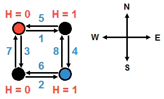For the following 4n(n + 1) lines, each line contains a nonnegative integer representing the number of people (i.e. the flow rate) passing through a particular street in a particular direction during rush hour.