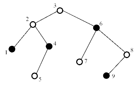 그런데 트리 T의 어떤 정점들에는 검은 돌이 놓여있다. 검은 돌은 한 정점에 많아야 하나씩만 놓일 수 있다.