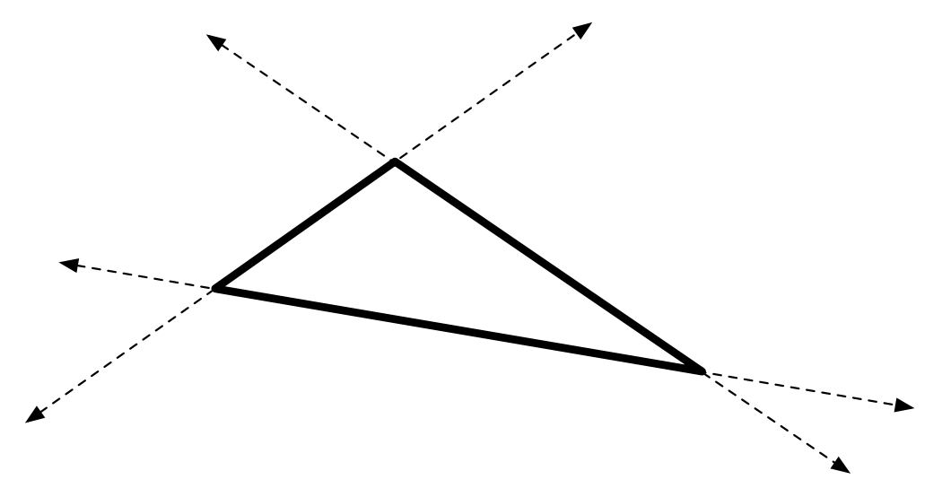 Three infinite lines define a triangle, unless they meet at a common point or some of them are parallel.