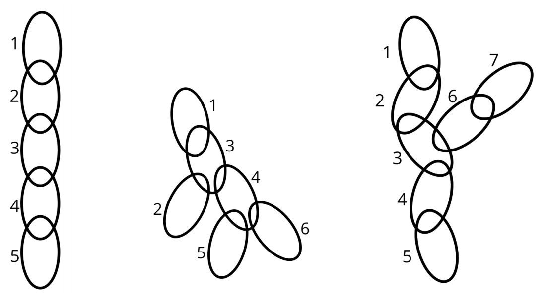 When he finished, he realized that the object he created did not resemble a usual chain at all. In an effort to straighten the chain, he repeatedly took two links which seemed to be at the ends of the chain and tried to pull them apart as far as he could. But there were some more pieces of the “chain” dangling down from the straightened piece at various places.