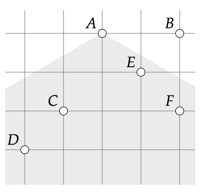 The map corresponding to this example is depicted on the right. From the house A, you can see the entire gray area, and thus the participant who chose to go to house A will take 4 pictures.