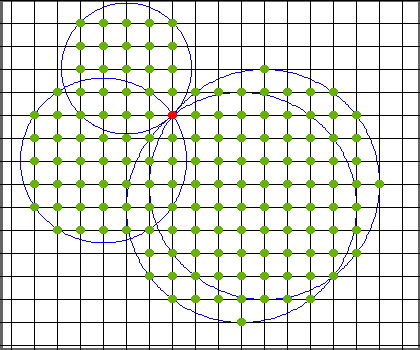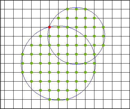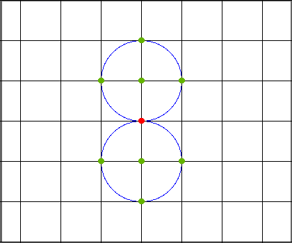 Count the number of lattice points (points with integer coordinates) that are inside at least one of the circles. Note that the boundaries are considered to be inside.