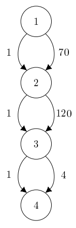 1 4 6 5 2 1 2 1 2 3 1 3 4 1 1 2 70 2 3 120 3 4 4 4 90 4 2 4 10 4 37 2 34
