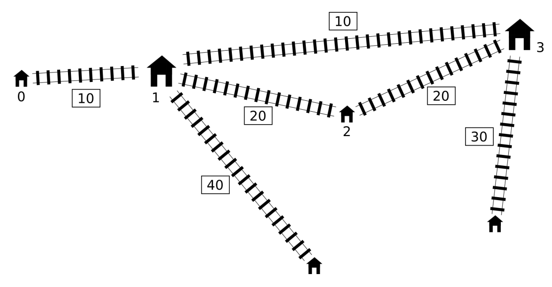 The optimal solution is to build the express line between stations 1 and 3, as shown below.