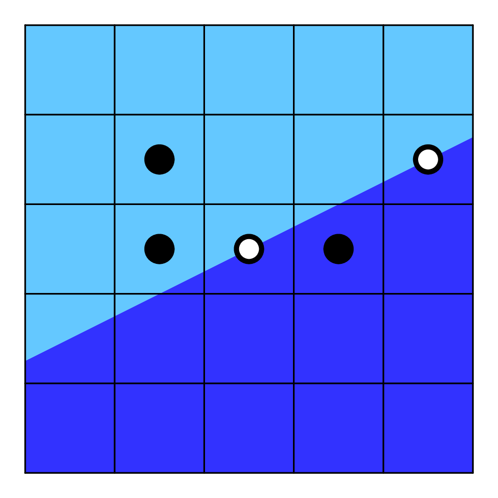 Given a single frame (image) from this camera, the software runs a highly advanced machine learning model to determine whether each pixel in the frame is sky, sea, or exactly on the horizon. The machine learning model is rather slow and can process only $900$ pixels before the next video frame comes in. To stabilize the drone quickly enough, you need to create an efficient algorithm that can find the horizon by querying at most $900$ pixels. Using this information, the rest of the BAPC will be able to compute the bank and pitch.