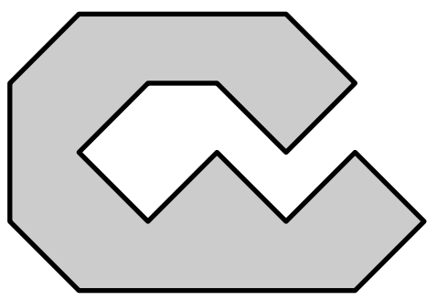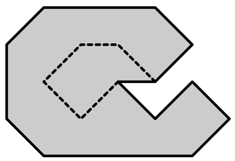 Более формально, представим крепостную стену как многоугольник $P$. Назовем точку $X$ защищенной многоугольником $P$, если любой луч, проведенный из $X$, пересекается с $P$. Например, любая точка внутри $P$ является защищенной. Множество всех защищенных точек также образует многоугольник. Назовем его $Q$.