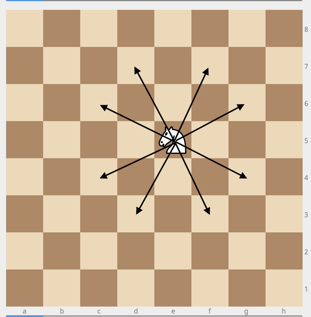 For the uninitiated, chess is a board game is played on a grid of $8 \times 8$ squares. The rows are numbered $1$ to $8$ with row $1$ at the bottom and columns are labeled with lowercase $a$ to $h$. The label of a square is its column, then its row. For example, valid square labels are $a1$ and $e5$.