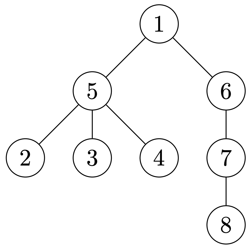 Following picture denotes genealogical tree of Bitian family. One of the optimal photos can contain members with numbers $7$, $6$, $8$, $1$, $2$, $5$, $3$ in this order. It can be shown it is impossible to have all of them on one photo.