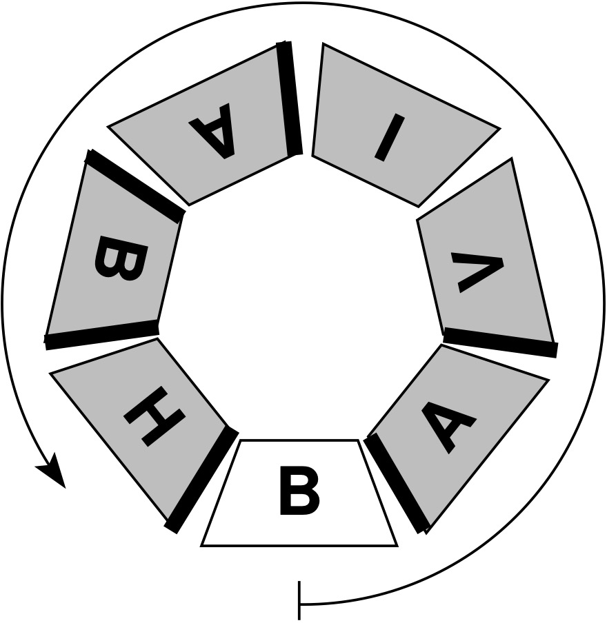 På första raden står ett heltal $N$, antal personer i ringen. På andra raden står personernas preferenser, givna i den ordning personerna sitter, moturs i ringen, i form av en sträng bestående av $N$ bokstäver, vardera V, H, A, B eller I.