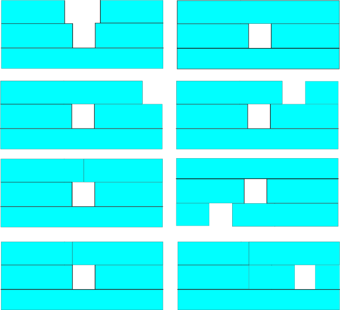 Det får dessutom inte finnas hålrum på samma position på två direkt efterföljande rader i muren (den tomma raden precis ovanför muren räknas inte).