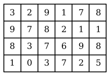 He must begin by stepping onto the square closest to himself, which we can think of as square (1, 1), and walk to some other square, which we can think of as square (X, Y ) for some X, Y > 1. Each step he takes is in either the positive-X or positive-Y direction, one square at a time. Every square has a number on it in the range 0 to 9, and the grid carefully monitors which squares he steps on. When he reaches the door, if the sum of the squares that he stepped on is sufficiently small, the door will open and he will be free. If not, he will be trapped forever.