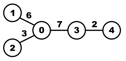 Given a tree, calculate the average distance between two vertices in the tree. For example, the average distance between two vertices in the following tree is (d01 + d02 + d03 + d04 + d12 + d13 + d14 + d23 + d24 + d34)/10 = (6 + 3 + 7 + 9 + 9 + 13 + 15 + 10 + 12 + 2)/10 = 8.6.