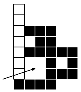 Например, две фигуры, показанные на рисунке выше, можно расположить как показано на следующем рисунке. Если выпустить хомячка в точку, отмеченную стрелкой, то доступная ему территория будет иметь площадь равную четырем.