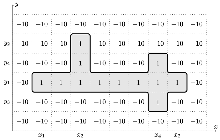 | 1 | 32 | $5 \le h, w \le 10$, $| c_i | \le 10$ |