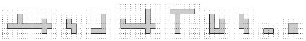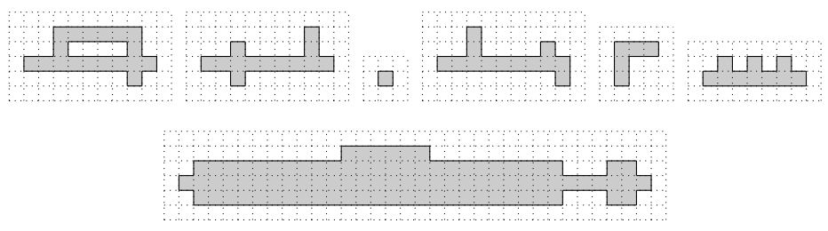 Введём на снимке систему координат с осью абсцисс, направленной вдоль строк снимка слева направо, и осью ординат, направленной вдоль столбцов снимка снизу вверх. Потенциальное изображение подводной лодки представляет собой любое множество элементов массива, состоящее из следующих частей: