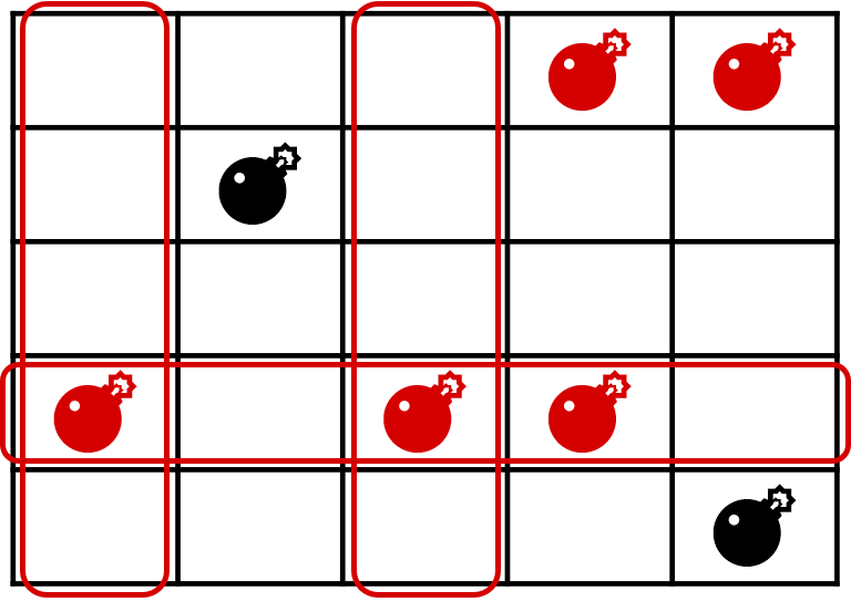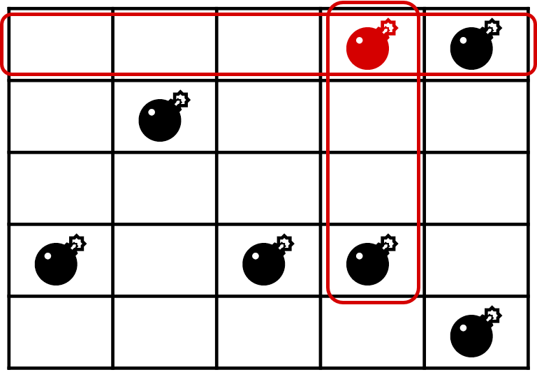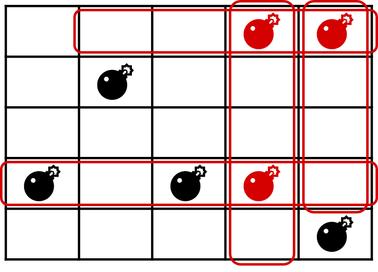 よって (4, 1) の位置にある爆弾が爆発すると合計で 5 つの爆弾が爆発する.