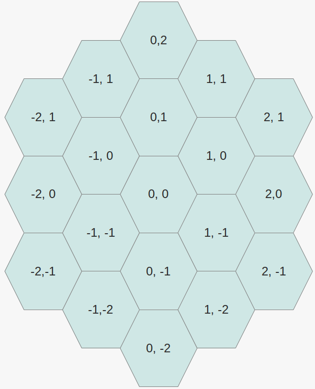 全探索お姉さんはとても優秀な女性である。 お姉さんは格子状の道の経路の数え上げを数千程度なら簡単に数え上げてしまう。 あなたと全探索お姉さんは今、六角形のタイルが敷き詰められた部屋にいる。 お姉さんは初めて見る六角形にとても興奮している様子である。 六角形の並びを座標に表すことに不慣れなお姉さんは図1のような座標系で部屋を表した。