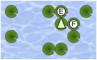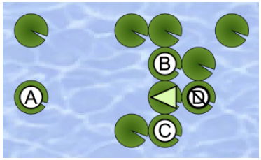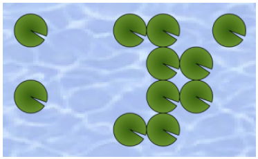After some struggles, he found this puzzle difficult, since there are a lot of leaves on the pond. Can you help him to find out a solution?