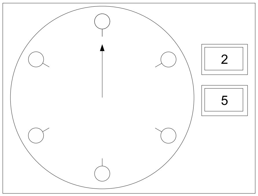 The lock has a circular dial with N lights around it and a hand pointing to one of them. The lock also has M buttons to control the hand. Each button has a number Li printed on it.