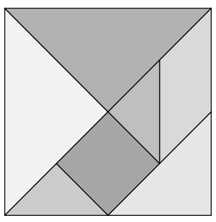 Chen, your pretty sister, got absorbed in a tiling puzzle called the tangram. Suddenly, she rushed to you and asked for your help, saying "Please, please help me solve this problem! I've been stuck on this for an hour, but I can't figure out how to solve it!" Your pretty, cute, lovely sister is asking for your help, so you have to resolve the problem for her immediately, but... can you really do that?