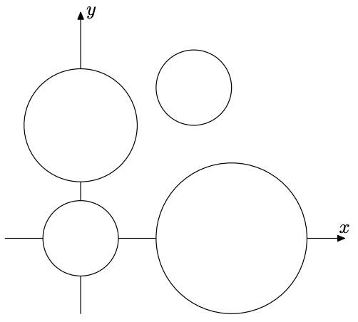 You are given N non-overlapping circles in xy-plane. The radius of each circle varies, but the radius of the largest circle is not double longer than that of the smallest.