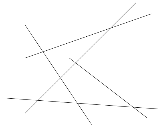 Each test case starts with an integer N (1 < N ≤ 500), which is the number of lines on the picture. The next N lines contain a line segment’s two end points. The coordinates are all integers (−10, 000 < x, y < 10, 000).