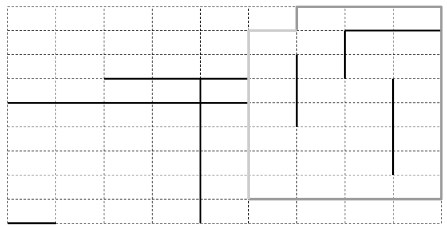 A printed circuit board has a number of horizontal and vertical tracks that may be used to connect electronic components. The example below demonstrates a square board with ten vertical tracks that we shall assign labels from 0 to 9 starting from the left end, ten horizontal tracks that we shall assign labels from 0 to 9 starting from the bottom end, and eight laid-down wires (shown in black). Each wire occupies a single horizontal or a single vertical track, and is described by its lower left coordinate followed by its upper right coordinate. In the example below, the eight wires are described by: