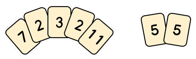For example, in the image above, the left group has cards whose sum is 25 and the right group has cards whose product is 25. Therefore, this is a valid split into groups.