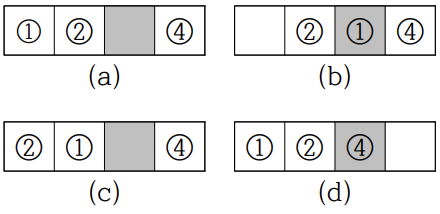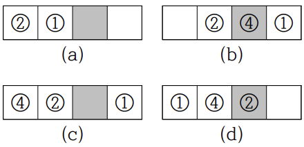 그림3(a)는 4번 좌석표를 받은 사람이 자리에 앉지 않았기 때문에 규칙에 어긋난 자리배치이다. 그림3 (b), (c), (d)의 경우에는 1번 혹은 4번 좌석표를 받은 사람이 원래 자리에서 2칸 이상 떨어진 자리에 앉아서 규칙에 어긋난 경우이다.