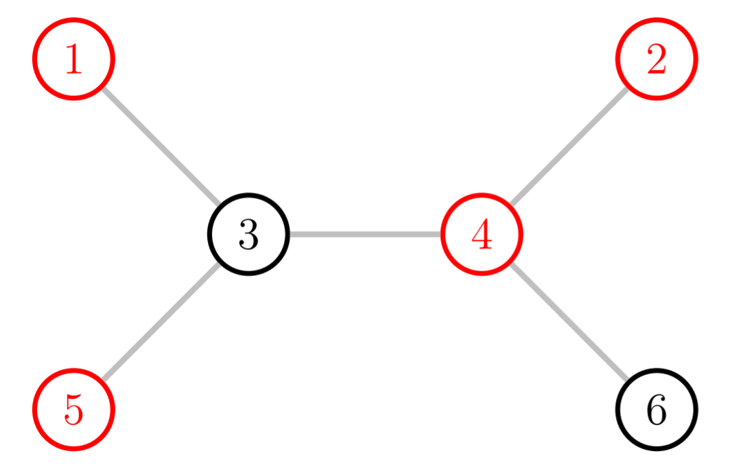민제는 정점이 $N$개인 트리를 가지고 있다. 이 트리의 각 정점은 빨간색 또는 검은색으로 칠해져 있다.