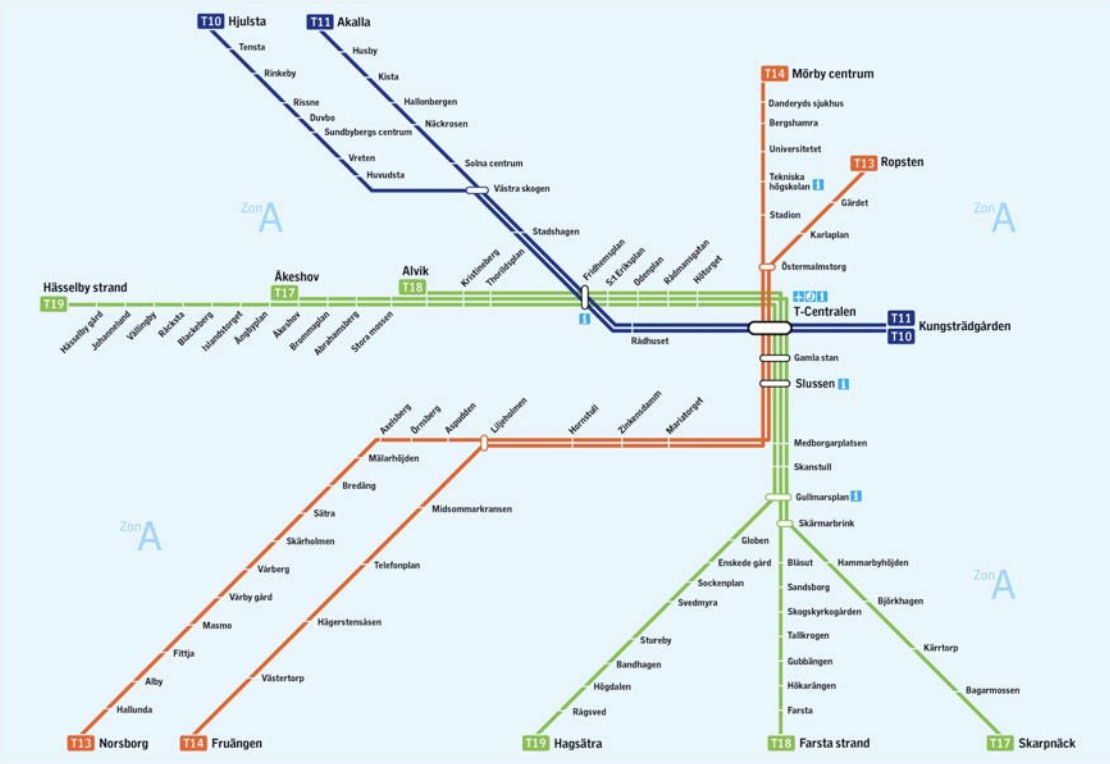 A topological map says very little about the geometry of a subway system, such as the distances (and consequently travel times) between different subway stations. For instance, as most students in Stockholm know, the distance between “Tekniska Högskolan” (The Royal Institute of Technology) and “Universitetet” (Stockholm University) is quite large, even though there is no indication of this on the map.