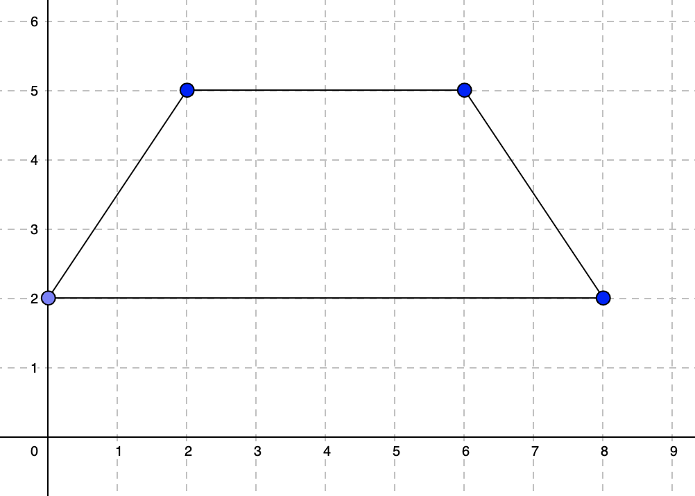 In Sample Case #1, we can output the above quadrilateral with coordinates $(2,5)$, $(6,5)$, $(0,2)$ and $(8,2)$. The area of this quadrilateral is equal to $18$.