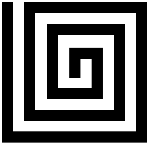 화석은 그림과 같이 정사각형 크기의 달팽이 형태로, 한 변의 길이는 무조건 $4k+1$ 꼴이다. 화석의 중심은 위에서 $2k+1$칸, 왼쪽에서 $2k+1$칸 떨어진 칸을 의미한다. ($k$는 양의 정수)