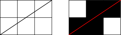 He uses the following algorithm. He divides the plane into squares 1x1 – these squares are pixels. When the line from (0, 0) to (a, b) intersects a square in more than one point, the square (pixel) will be black. Otherwise it will be white. Look at the example: