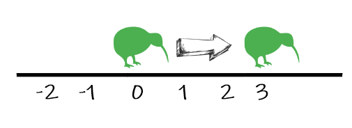 키위는 뉴질랜드에 사는 새다. 키위는 수직선 위를 움직이는데, 처음에 $0$에서 시작해서 다음과 같은 과정으로 움직인다.