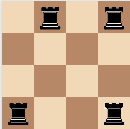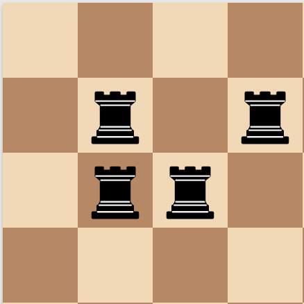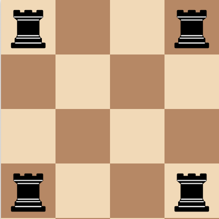 In other words, you need to find the minimum number of moves that you can perform, such that after them it will be possible to find a rectangle with four rooks in its corners.