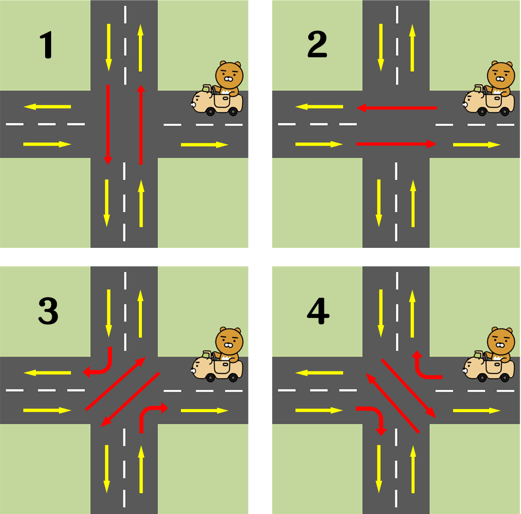 신호의 상태에 따른 차량의 이동 방향은 위 그림과 같다.