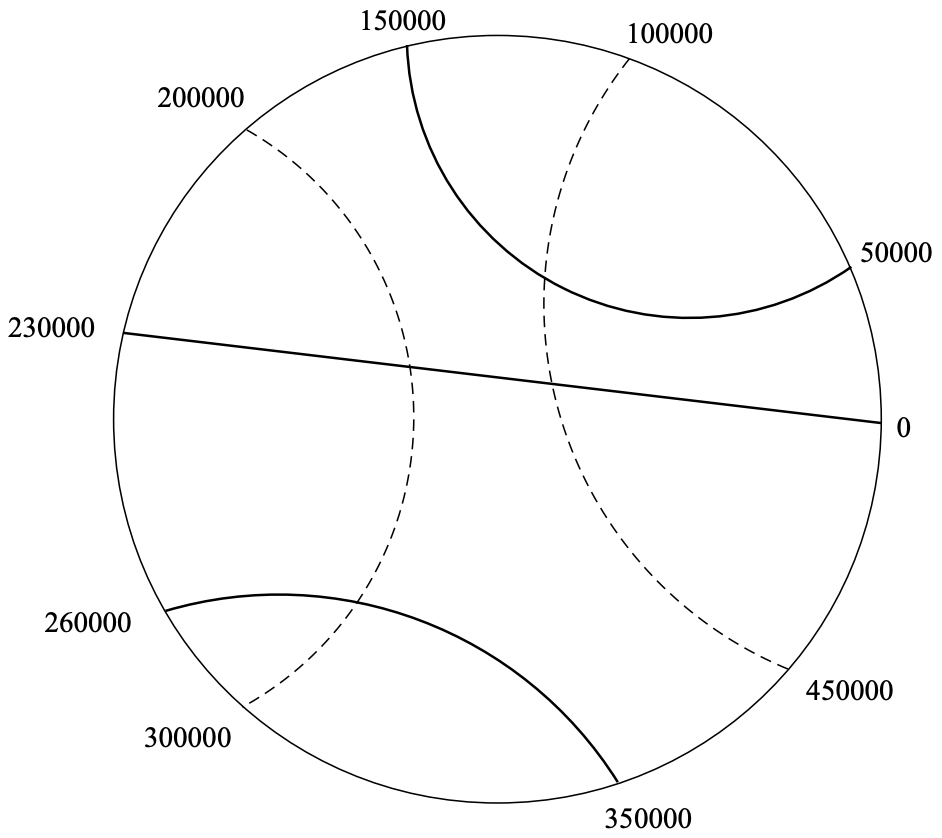 おのおのの観光船の計画は,湖の外周の 2 点を結ぶものであり,計画は全部で N 個ある.i 個目の計画 は,地点 si と地点 ti を結ぶ観光船を運航するというものである.ここで,地点 x とは,湖の東の端から周 に沿って反時計回りに距離 x メートルだけ進んだ地点のことを指す.湖の一周の長さは 500,000 メートル である.