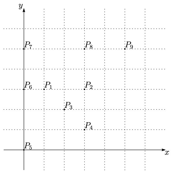 P1(1, 3), P2(3, 3), P3(2, 2), P4(3, 1), P5(0, 0), P6(0, 3), P7(0, 5), P8(3, 5), P9(5, 5)